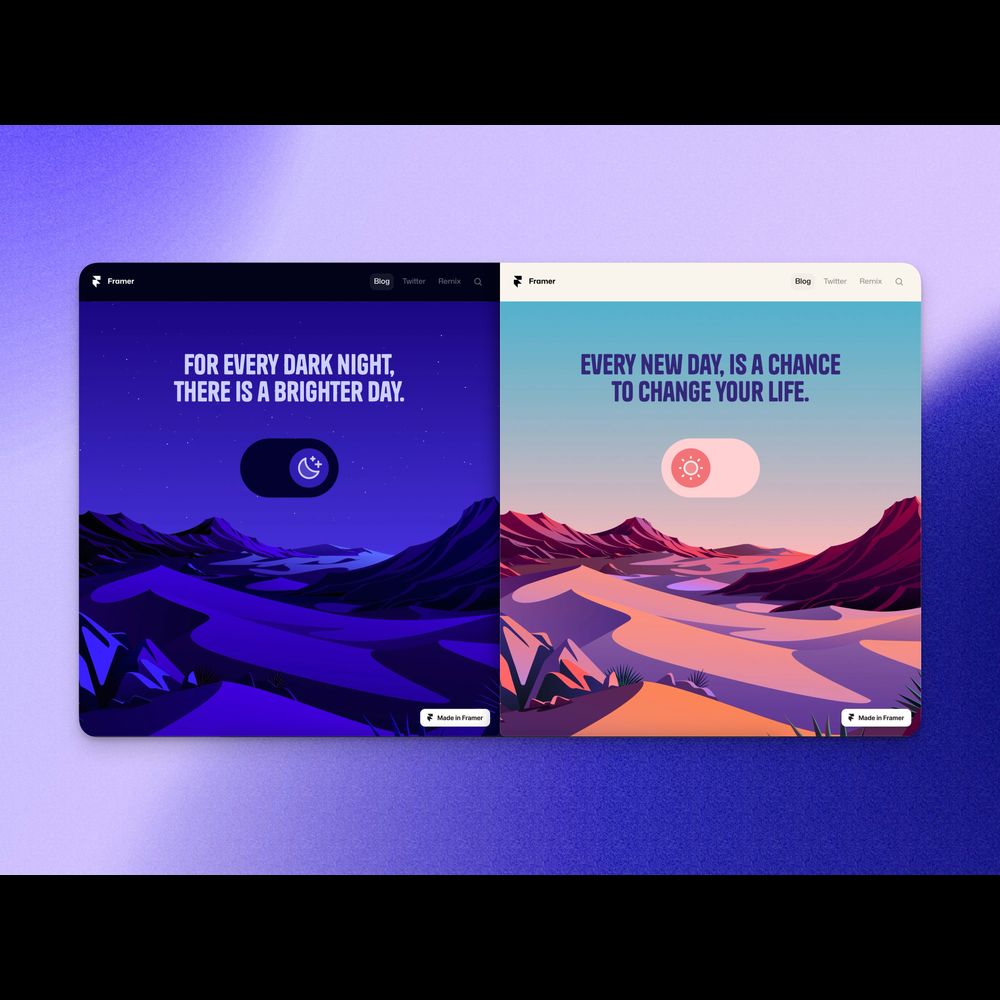 MoonSwitch™ — Is a Dark/Light Mode Toggle Switch Component for Framer. By default Framer allows you to switch between Dark/Light mode based on the Operating System theme. With this toggle you can allow your visitors to switch using a dedicated component on your page. Copy/Paste it, Drag & Drop it. Customize it using the options in the sidebar, change the switch, knob & icon color as well as the icon sizes. Live demo: https://moonswitch-remix.framer.website I'm not working with framer anymore so I decided to make this product free for personal use - For use in a template you must purchase the creators license - All existing customers are still supported - For any support question paid customers can email me at [email protected]