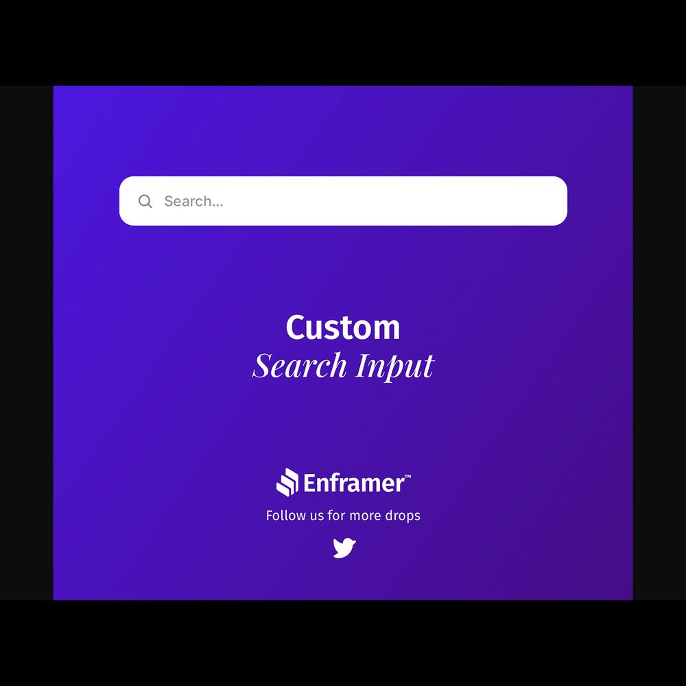 Introducing Enframer's Custom Search Input for Framer! By default the search input provided in the insert panel only displays on the page as an icon. This component combined with the original search component allows you to display a custom search input on your page. Preview Here Created by enframer.com, this component offers unlimited creative possibilities. You can customize the Placeholder, Text Color, Background Color, Border Radius, Icon Visibility, Width & Height. Get your free remix link now and elevate your Framer projects!