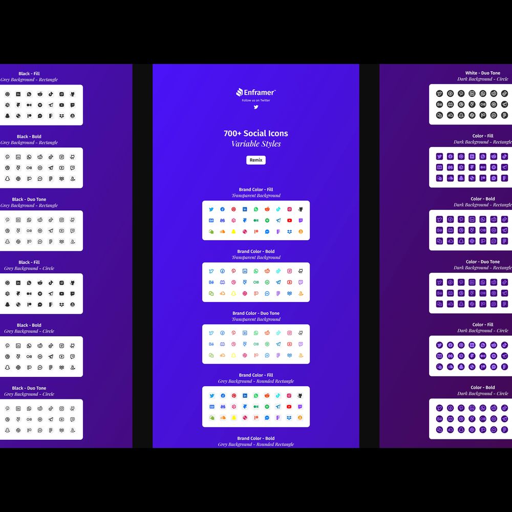 Introducing Enframer's Social Icon Pack: 700+ FREE social icons for Framer! Enhance your designs with a vast collection of icons featuring various styles, including thin, bold, duotone, and fill. Each icon comes in multiple variations and it's matching brand color. Plus the ability to create your own variations and using your own colors and styles. Created by enframer.com, this pack offers unlimited creative possibilities. Get your free remix link now and elevate your Framer projects!